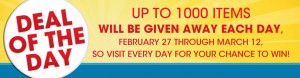 Wahoo! Dillons is having a “Deal of the Day” promotion! Everyday through March 12, 2011, 1000 items will be given away from 11:00am-5:00pm Central Time (apparently at a randomly chosen time each day). Log in to your account HERE for a chance to win. If you are one of the first 1000 that sign in, your freebie will be automatically loaded onto your shopper’s card.